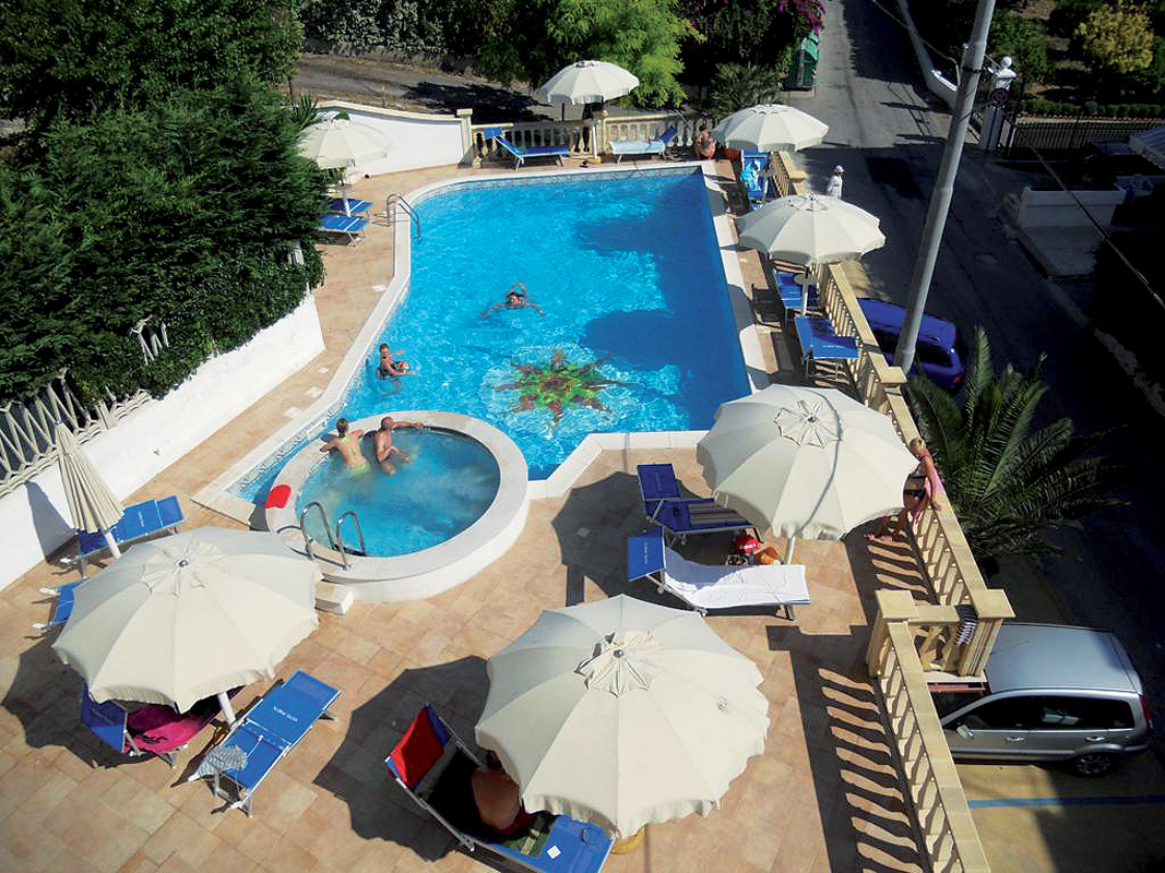 bazén s vírivkou až pre 8 osôb a ležadlami, plážový servis (1 slnečník a 2 ležadlá / izba v cene, od 2. radu) na pláži pri partnerskom hoteli Marechiaro vzdialenom 1,2 km