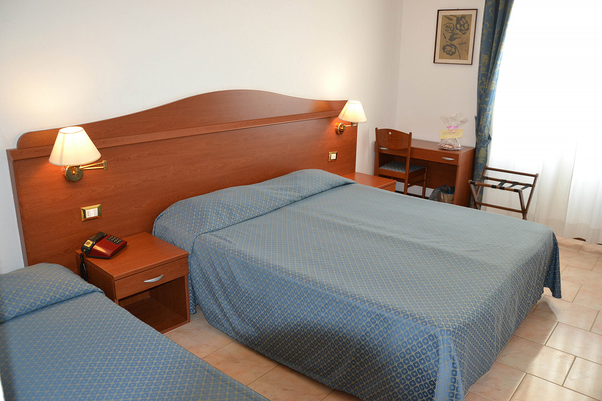 izba s manželskou posteľou či 2 samostatnými lôžkami, sociálne zariadenie so sprchou či vaňou, balkón s priamym výhľadom na more; 3. a 4. lôžko formou prístelky či poschodovej postele; izby sa nachádzajú v hoteli Heron