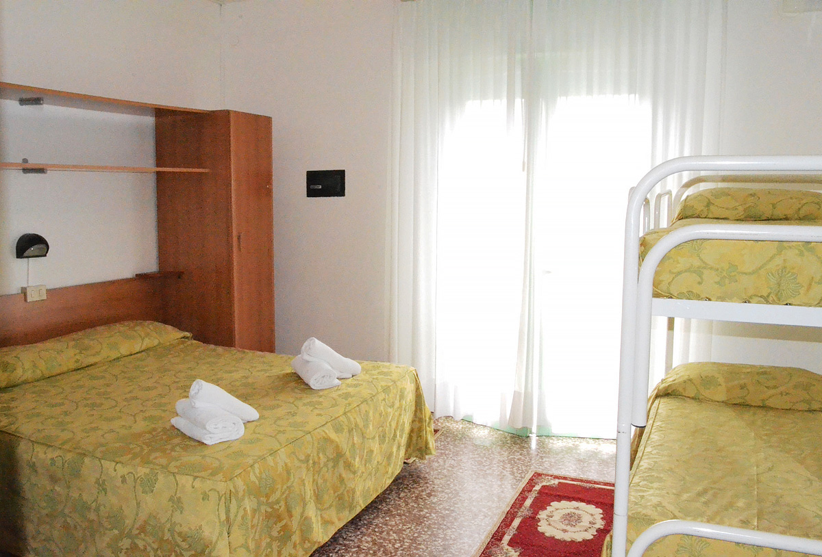 izba s manželskou posteľou alebo 2 samostatnými lôžkami, sociálne zariadenie so sprchou so závesom, balkón; 3. a 4. lôžko formou prístelky či poschodovej postele