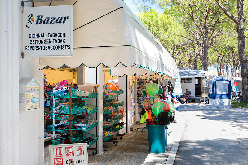 recepcia, reštaurácia / pizzeria / bar, bar na pláži, detské ihrisko, animačné programy približne od konca mája do začiatku septembra), práčky a sušičky na žetóny*, 1x vyhradené parkovacie státie / mobilhome, supermarket, trafika, kaderníctvo, wi-fi pripojenie na internet*