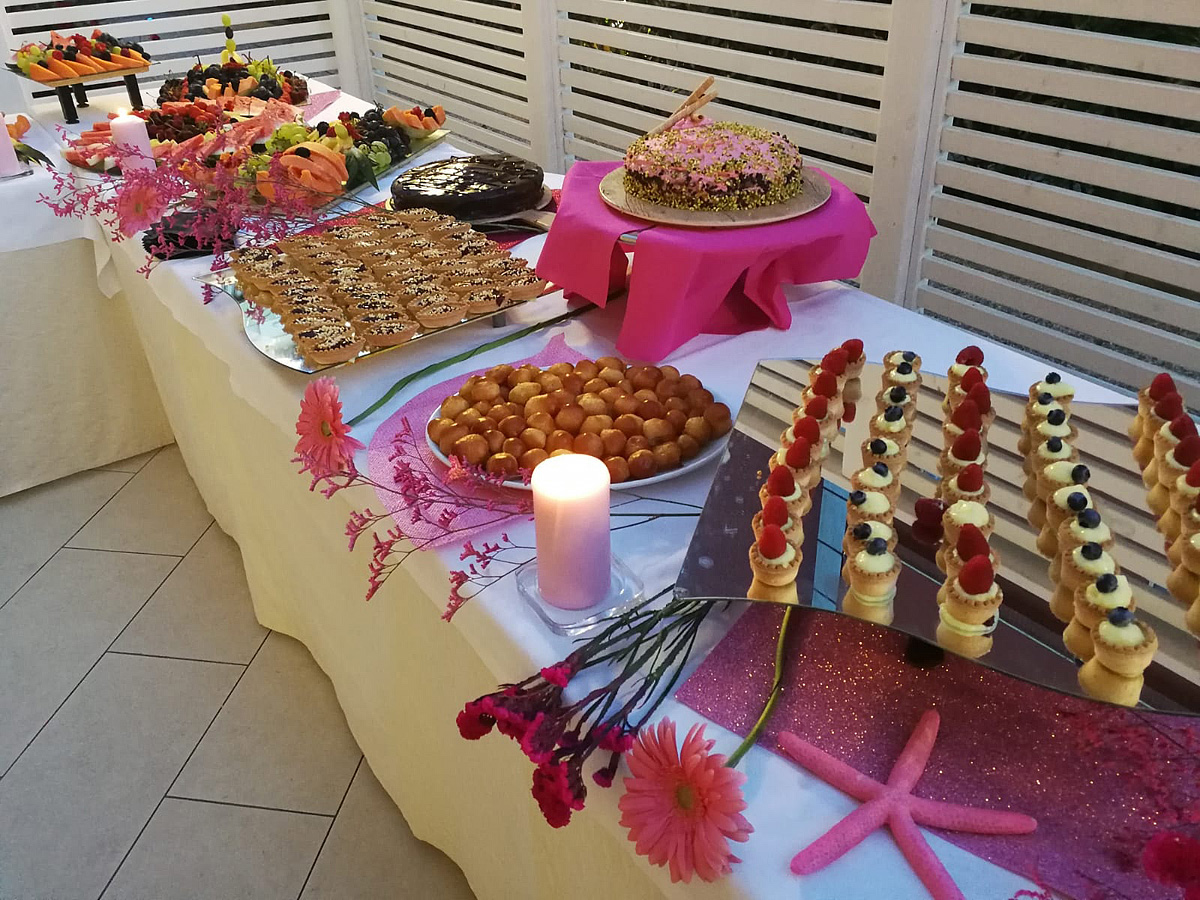 večera - servírovaná s výberom z menu, predjedlá, šaláty a dezerty formou bufetu, čapované nápoje (voda, víno a nealko); ostatné nápoje za poplatok