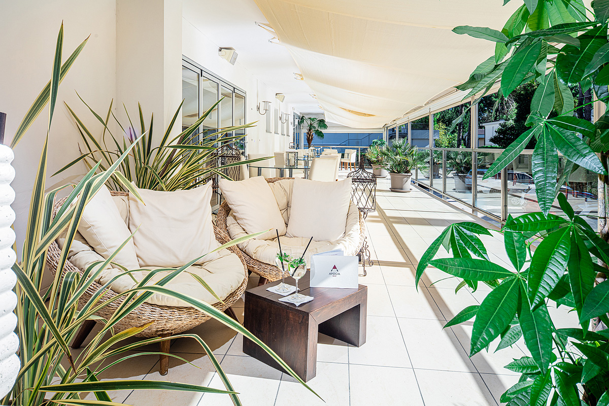 vybavenosť a služby - recepcia / lobby, reštaurácia, vnútorný a vonkajší bar, wi-fi pripojenie na internet, výťahy, vonkajšia terasa s posedením, fitness, vyhradené parkovisko (obmedzený počet miest; nemožno rezervovať vopred), záhrada; väčšina spoločných priestorov hotela je klimatizovaná