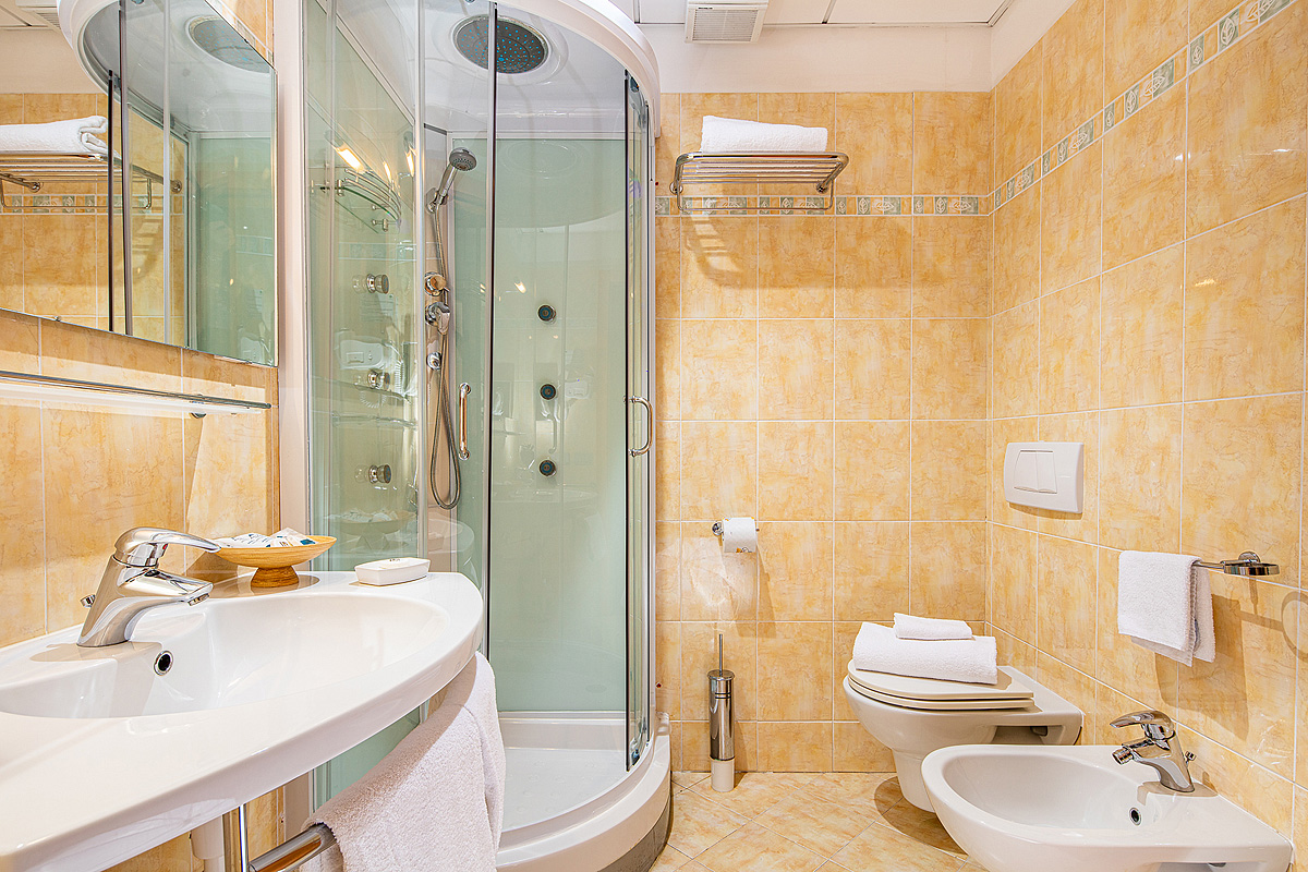 Classic 2/3 - 15 až 18 m² - izba s manželskou posteľou či 2 samostatnými lôžkami, sociálne zariadenie so sprchou, balkón; 3. lôžko formou prístelky