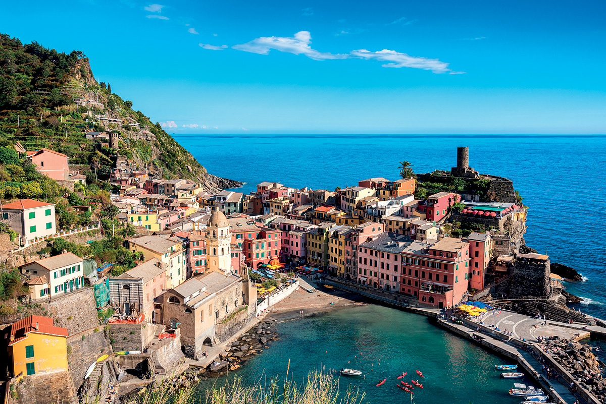 V provincii La Spezia na Talianskej riviére, v jej východnej časti nazývanej Riviera di Levante, takmer na hranici s Toskánskom, leží oblasť Cinque Terre. Ide o jeden z najmalebnejších kútov Talianska - päť obcí - Riomaggiore, Manarola, Corniglia, Vernazza a Monterosso al Mare - je nalepené svojimi terasovito postavenými domami na skalných útesoch ligúrskych Apenín nad Ligurským morom ako lastovičie hniezda.