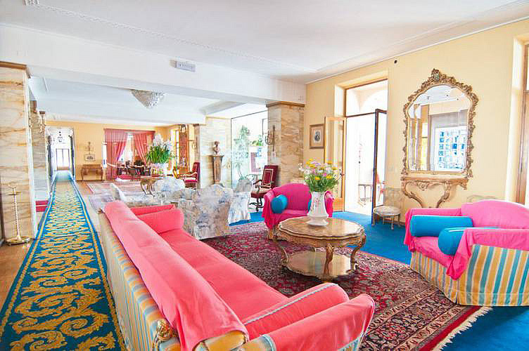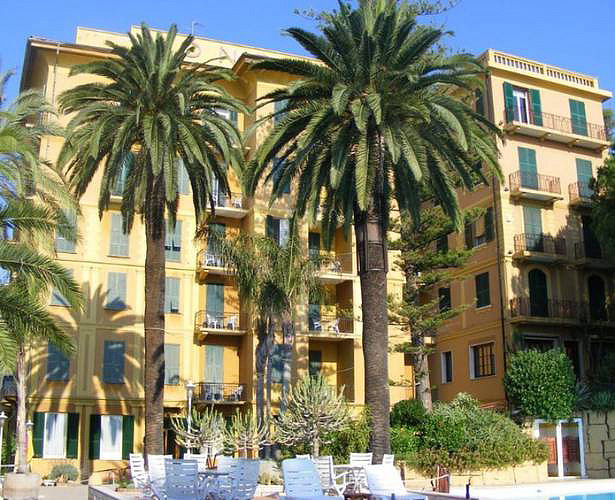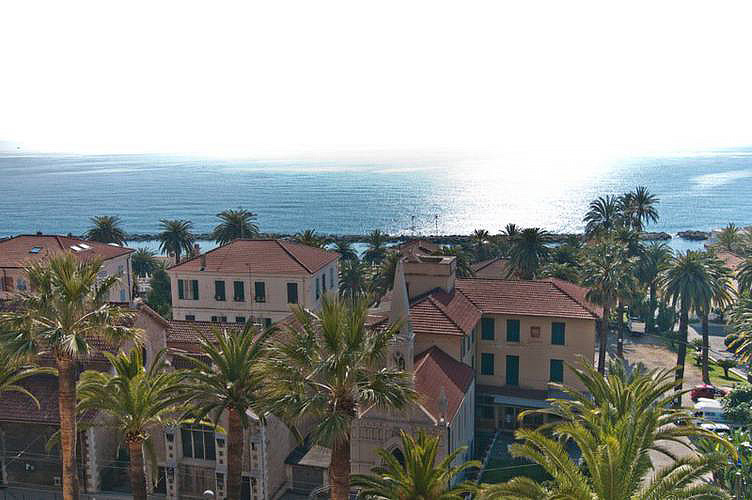 Sanremo, piesočná pláž, miestami s okruhliakmi, s postupným vstupom do mora - 100 m, centrum - 500 m