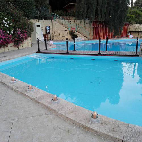 bazén cca 250 m² s detským bazénikom (v prevádzke cca od júna do septembra podľa počasia), lehátka*, osušky*