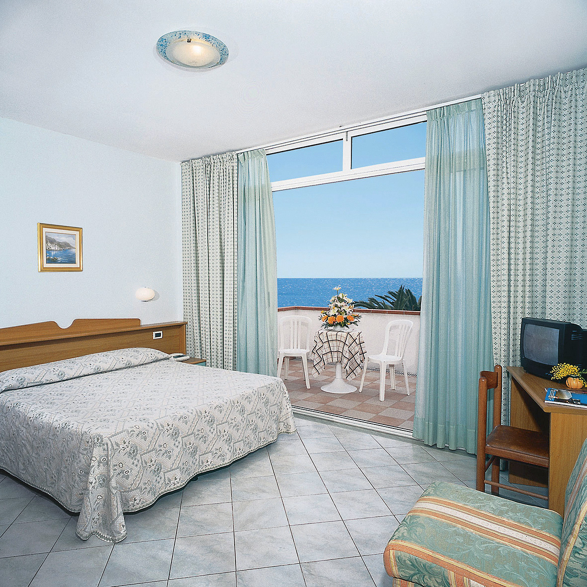 izba s manželskou posteľou, sociálne zariadenie, balkón s bočným či priamym výhľadom na more; možnosť 3. lôžka formou prístelky