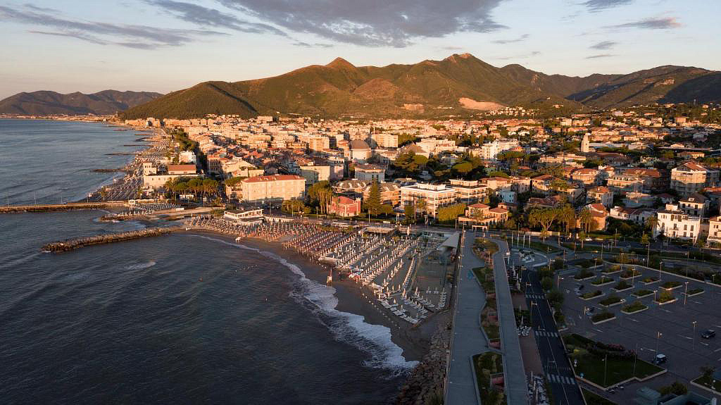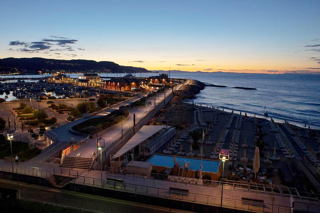 Loano, centrum - 200 m, pláž / hrubopiesočná, miestami s jemnými okruhliakmi, s mierne sa zvažujúcim vstupom do mora - 20 m