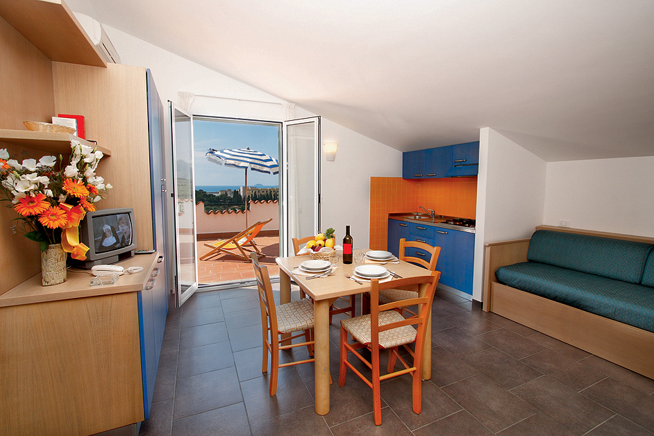 45 až 50 m² - spálňa s manželskou posteľou a ďalšími 2 samostatnými lôžkami či poschodovou posteľou, obývacia izba s kuchynským kútom, rozkladacím gaučom pre 1 osobu a vysunovacím či skladacím lôžkom, sociálne zariadenie so sprchou či vaňou, balkón či terasa