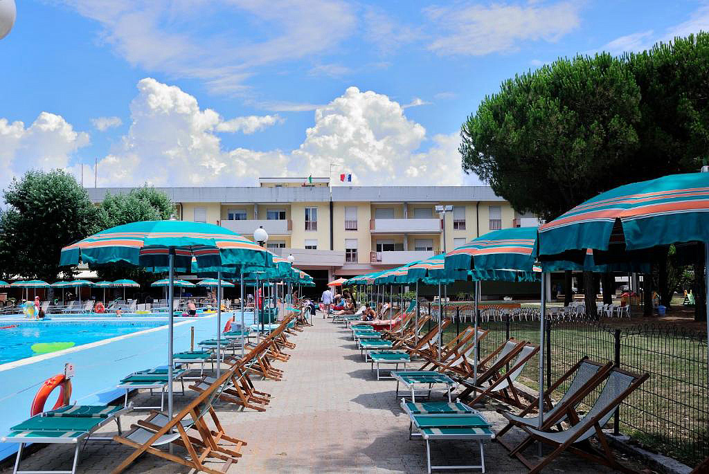 bazén 25 x 10 m so slnečníkmi a lehátkami (1 slnečník + 2 lehátka / apartmán), detský bazén 10 x 5 m, tenis, stolný tenis, požičovňa bicyklov*