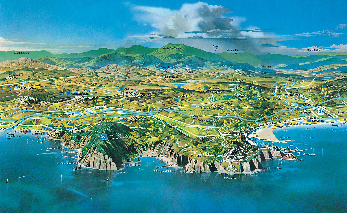 Na južnom okraji Ancony, významného prístavu a metropoly kraja Marche, sa začína dvíhať pohorie, ktoré sa v dĺžke takmer dvadsiatich kilometrov tiahne cez Portonovo a Sirolo ďalej na juh až na pomedzie Numan a Marcelli. Strmé útesy takmer kolmo padajúce k morskej hladine sú striedané romantickými zátokami s väčšinou štrkovými plážami alebo s hrubozrnným pieskom, zmiešané lesy prechádzajú do píniových hájov, zvlnená okolitá krajina zaujímavo kontrastuje s výbežkami Apenín týčiacimi sa v diaľke, stručne zhrnuté - panorámy ako zo žurnálu. A pripočítame k tomu ešte doteraz takmer nepoškvrnenú okolitú prírodu poskytujúcu ideálne podmienky pre nespočetné druhy flóry aj fauny, more ponúkajúce milovníkom rybolovu niekedy až prekvapivé úlovky, aj v roku 1987 na hore Monte Conero zriadený Regionálny prírodný park pretkaný 18 značenými turistickými trasami s celým radom dych-berúcich vyhliadok, tak je výpočet, hlavných argumentov hovoriacich jasnou rečou v prospech Marcelli, takmer naplnený.