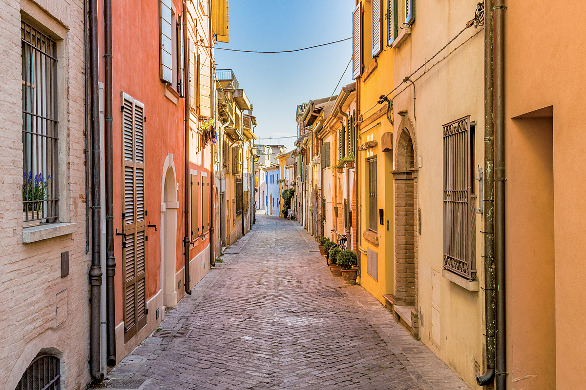 Za zmienku však stojí aj bohatá história Rimini. Staré mesto, ktoré bolo piesočnými naplaveninami počas posledných viac ako 2000 rokov posunuté zo samého pobrežia asi 1 kilometer do vnútrozemia, totiž bolo pod názvom Ariminium založené už v 3. storočí pred naším letopočtom na križovatke antických ciest Via Emilia a Via Flaminia. Z antických dôb sa tu dodnes zachoval Augustov oblúk z roku 26 pred Kristom, Tibériov most z roku 20 n. l. a zvyšky amfiteátra. V stredoveku patrilo mesto rodu Malatesta. Medzi najvýznamnejšie dedičstvo tejto epochy sa radí hrad Rocca Malatestiano a chrám Tempio Malatestiano postavený v 15. storočí Leonom Battista Albertim v renesančnom štýle pre Sigismondo Malatesta. Ide o vôbec jedny z prvých renesančných stavieb mimo Toskánska ležiace za Apeninami. V chráme nájdeme vzácny maľovaný kríž od Giotta a cennú fresku znázorňujúcu Sigismonda Malatesta kľačiaceho pred svätým Sigismondim od Piera dalla Francesca. Srdcom starého mesta je námestie Piazza Cavour s radnicou, fontánou Fontana della Pigna, sochou pápeža Pavla V. a románskym Palazzo d'areng. Zabudnúť ale nesmieme ani na Rimini ako rodisko Federica Felliniho, najväčšieho talianskeho filmového režiséra 20. storočia, ktorý "svojmu" mestu venoval nezabudnuteľný film Amarcord.