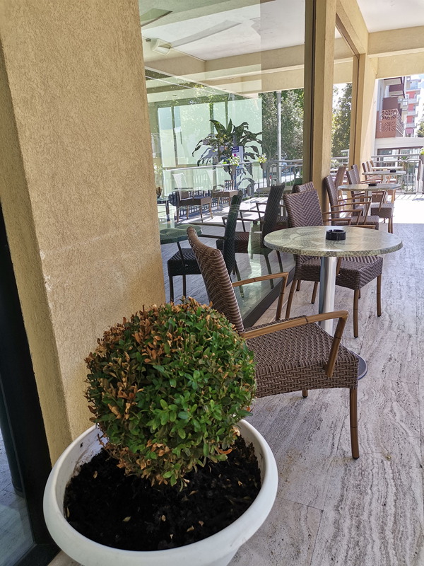 jednoduchý hotel s bazénom priamo pri plážovej promenáde
