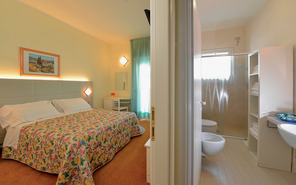 izba s manželskou posteľou či 2 samostatnými lôžkami, sociálne zariadenie so sprchou, balkón s priamym výhľadom na more; 3. a 4. lôžko formou pevného lôžka či prístelky či poschodovej postele