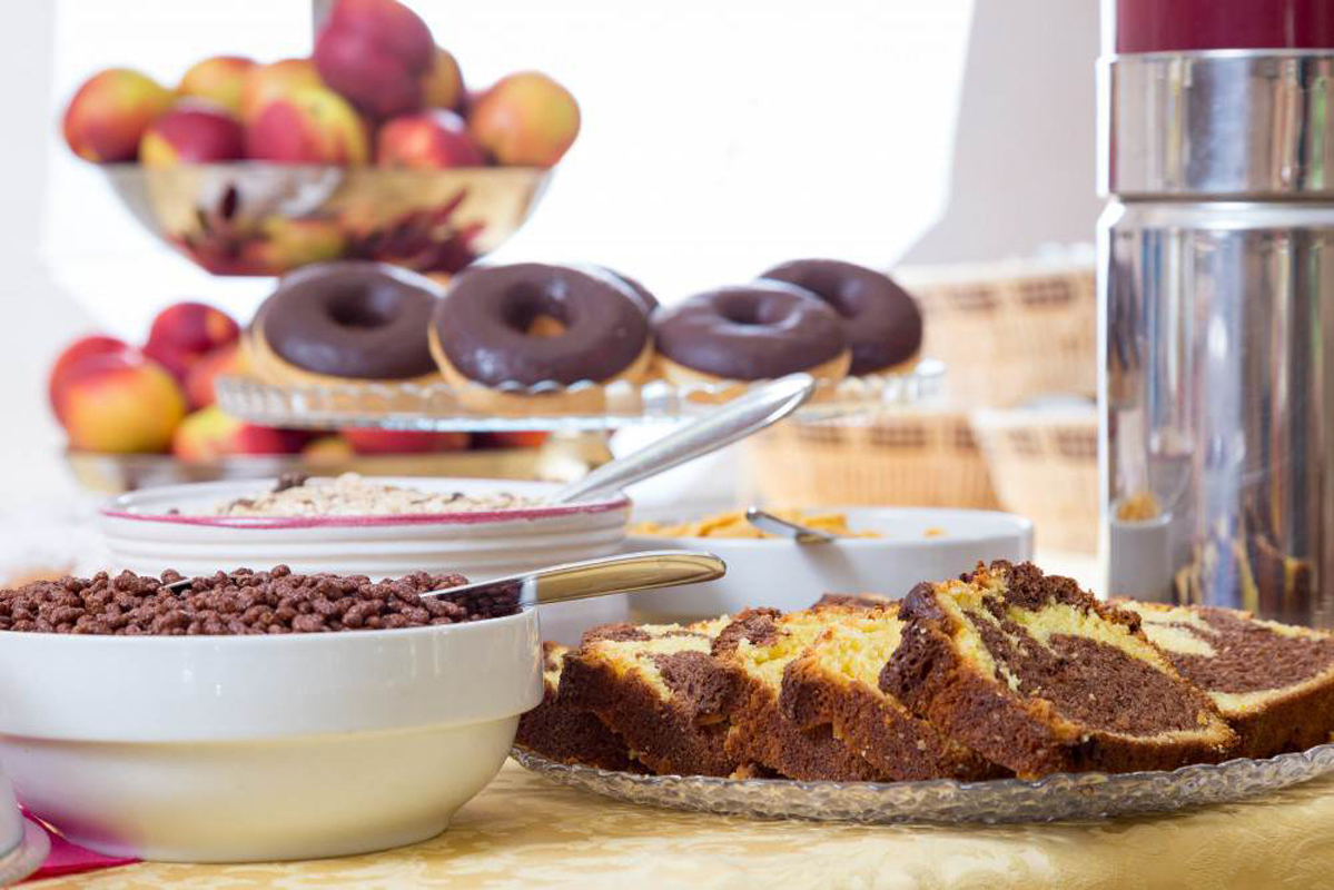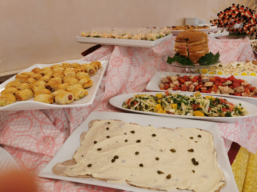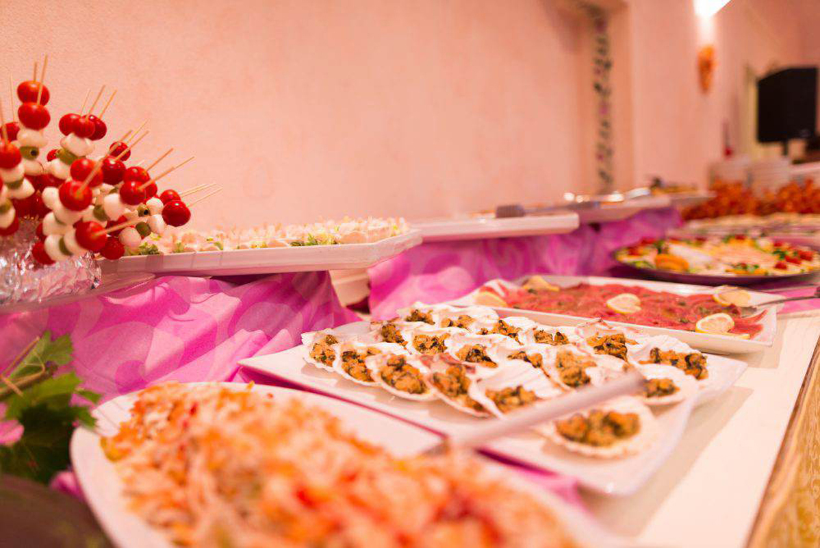 zvyčajne formou bufetu, neobmedzené množstvo čapovanej vody, vína a nealkoholických nápojov; ostatné nápoje za poplatok