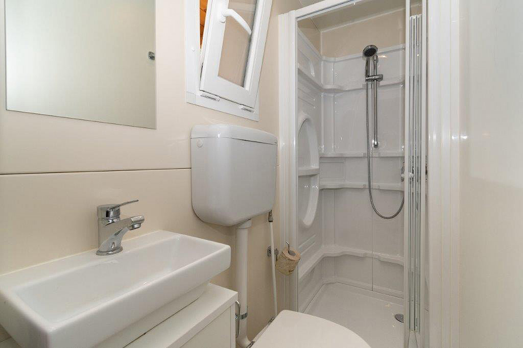 33 m² - spálňa s manželskou posteľou, spálňa 2 samostatnými lôžkami a 1 zaveseným lôžkom (pre dieťa do nedovŕšených 10 rokov), obytná časť s kuchynským kútom, 2x sociálne zariadenie so sprchou, krytá drevená terasa