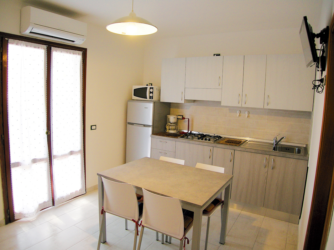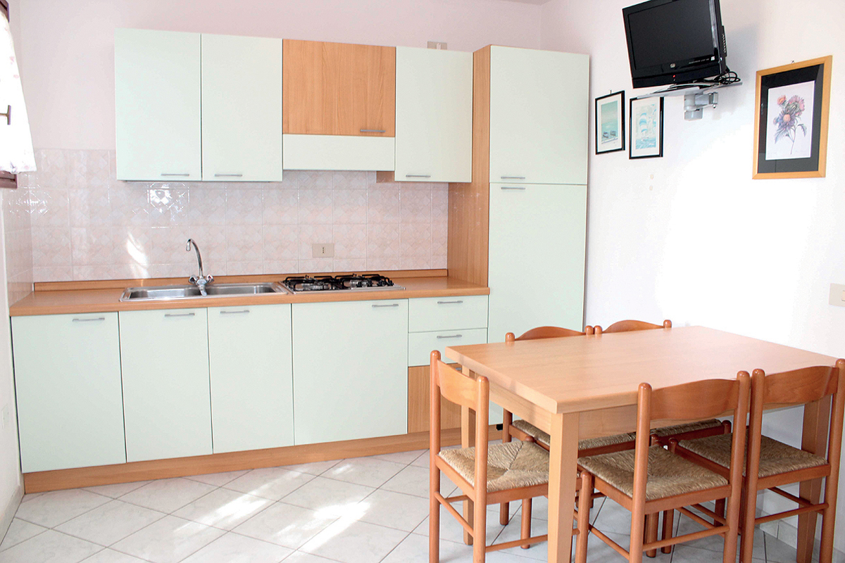 bilo 4 A - 30 m² - 1 spálňa s manželskou posteľou a eventuálne ďalším lôžkom, obývacia izba s kuchynským kútom a rozkladacím gaučom pre 1 až 2 osoby, sociálne zariadenie so sprchou, balkón či terasa či terasa s predzahrádkou