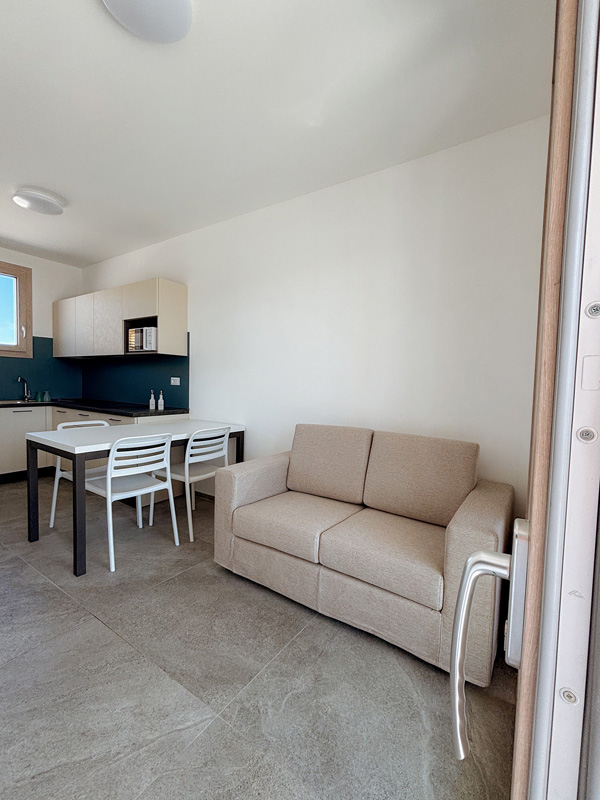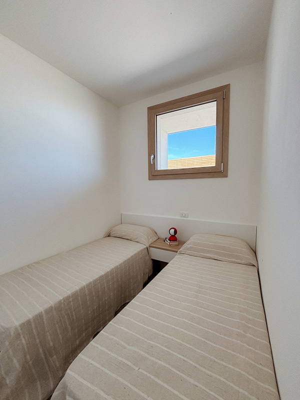 1 spálňa s manželskou posteľou, 1 spálňa s 2 samostatnými lôžkami, obývacia izba s kuchynským kútom a gaučom pre 1 osobu, sociálne zariadenie so sprchou, terasa