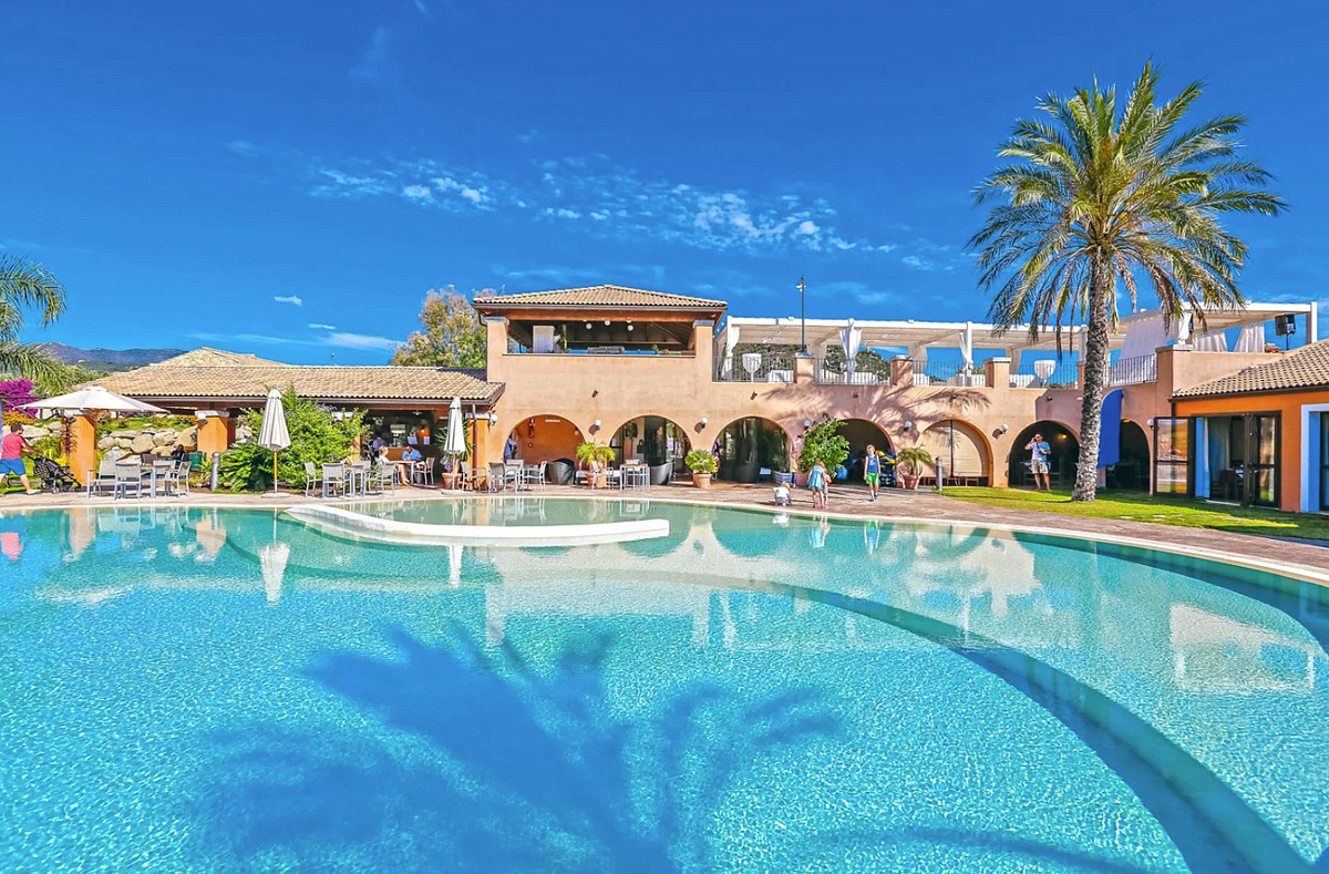 hotelový komplex v typickom sardskom štýle v juhovýchodnej časti Sardínie, takmer na polovičnej ceste medzi mestami Costa Rei a Villasimius; k dispozícii celkom 103 izieb rozmiestnených v radových jedno či dvojpodlažných vilkách v rozľahlej hotelovej záhrade vzdialených 300 až 450 m