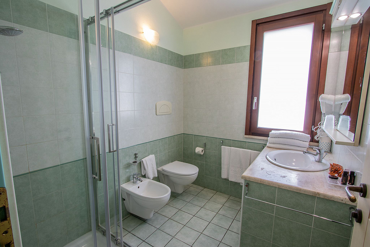 izba s manželskou posteľou alebo 2 samostatnými lôžkami a 1 samostatným lôžkom, či rozkladacím lôžkom, sociálne zariadenie zvyčajne so sprchou, malá terasa či balkón; izby môžu byť dvojposchodové, kedy izba s lôžkami je na 1. poschodí a sociálne zariadenie na prízemí