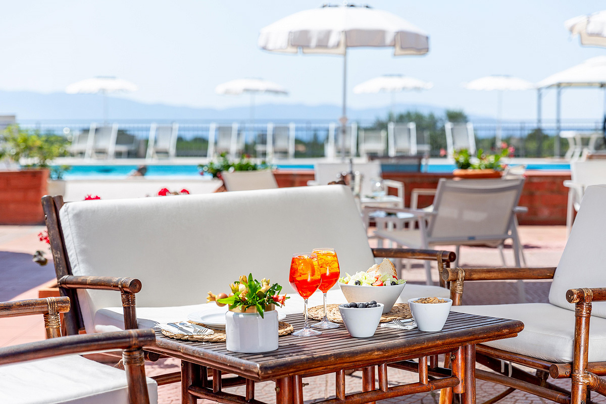 bazén pre dospelých a detský bazénik so slnečníkmi a lehátkami (približne od polovice júna do polovice septembra), vírivka, multifunkčné ihrisko, tenisový kurt, stolný tenis, zmluvná pláž (vo vzdialenosti 11 km od rezortu): plážový servis*, plážový volejbal, detské ihrisko