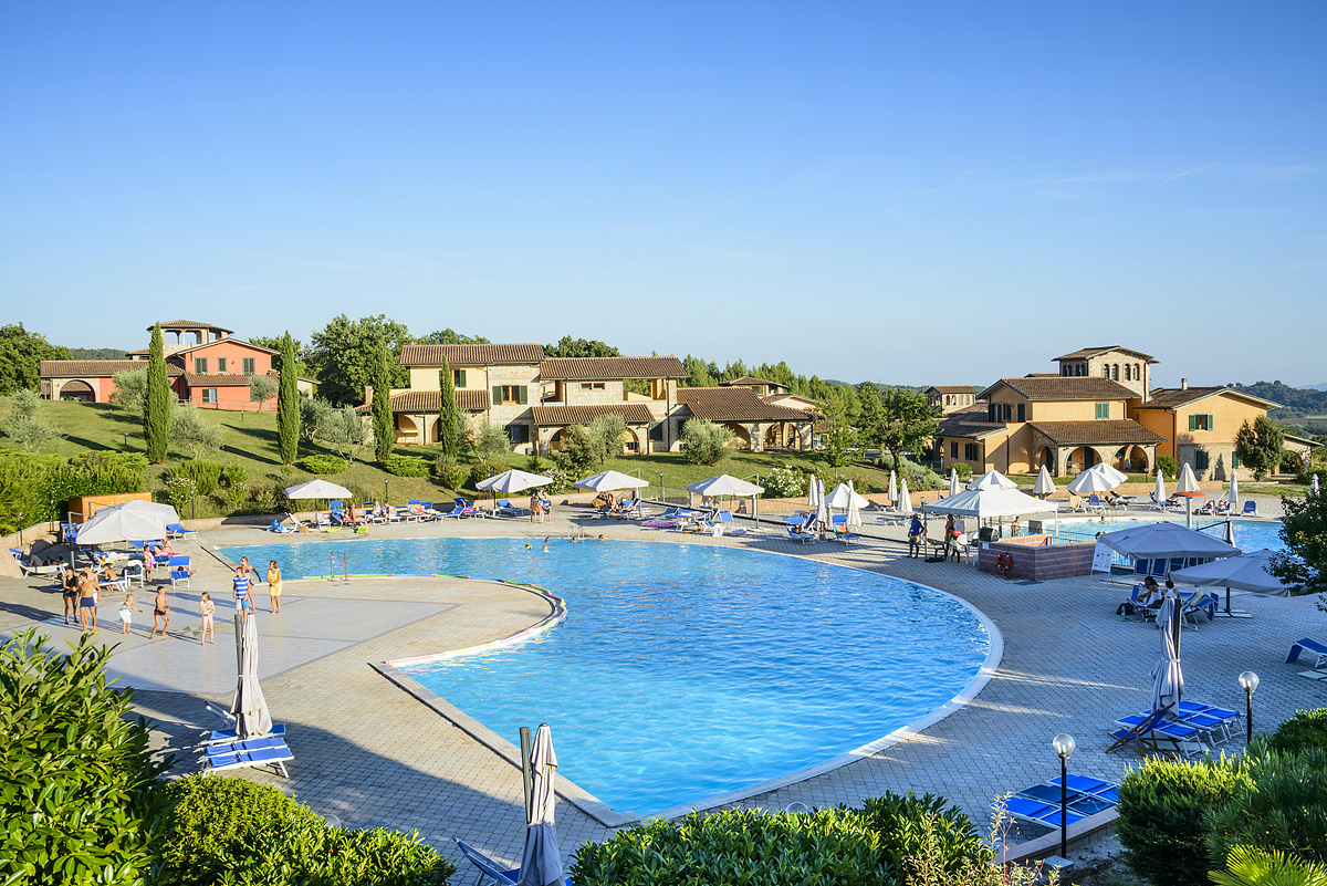 prázdninový komplex zasadený do nádhernej toskánskej krajiny s panoramatickým výhľadom do okolia