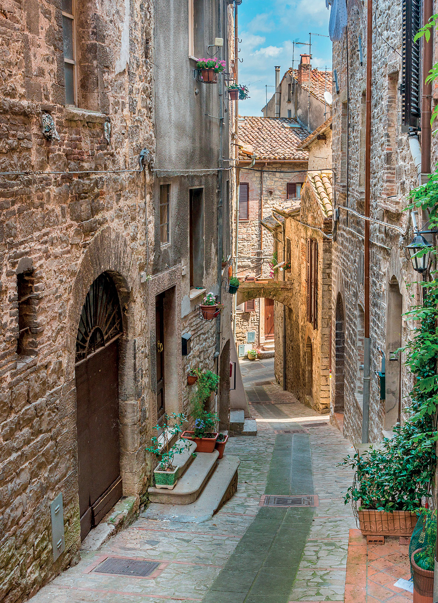 Najsvernejšie mestečko Umbrie zdobia mnohé kostoly, veže a paláce, lemujú ho mestské hradby. K posedeniu lákajú kaviarne a trattorie, k nákupom zasa butiky.
