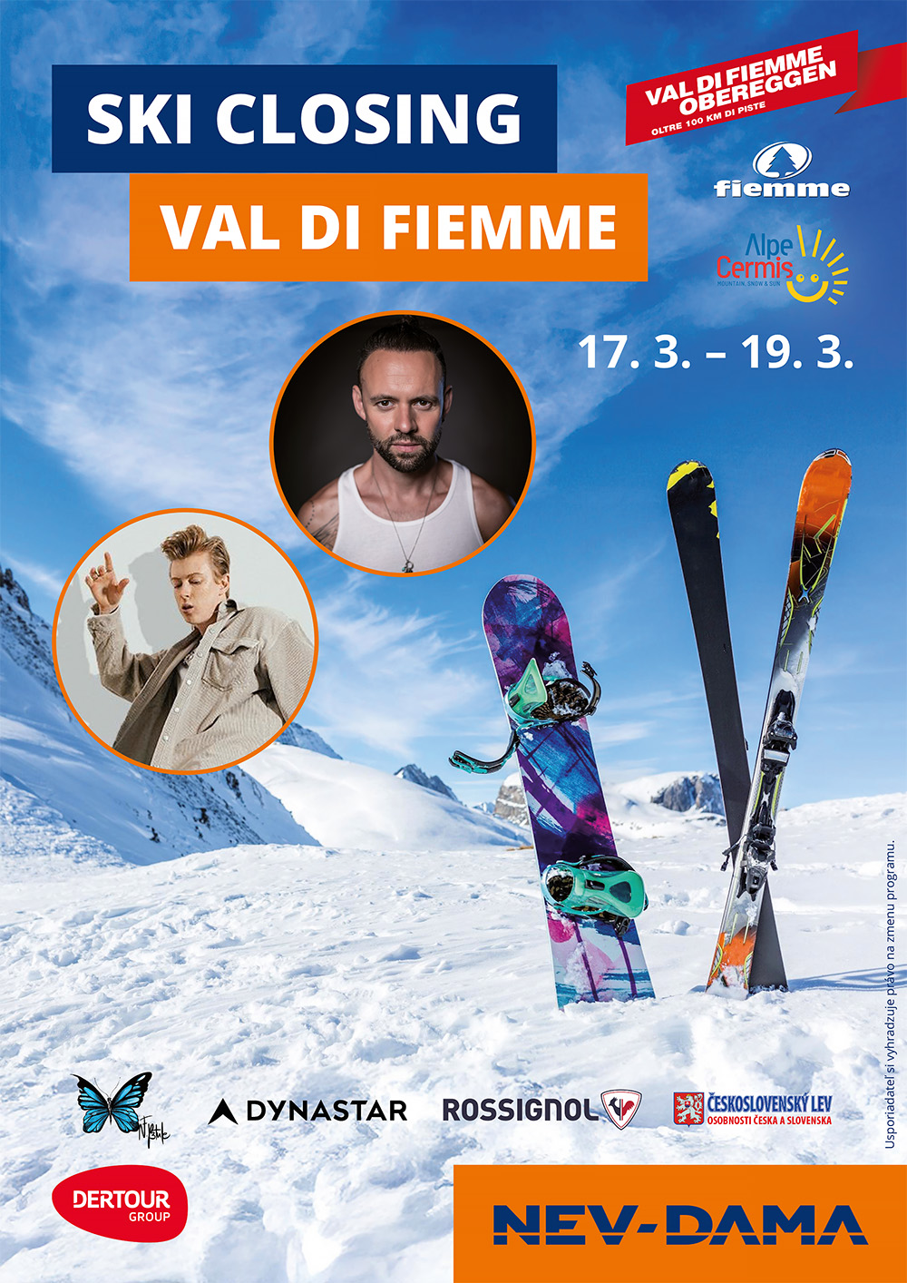Máte chuť vyraziť na jarné lyžovanie, než definitívne zabalíte zimnú výbavu do skrine? Neváhajte a vyrazte s nami na Ski Closing do Val di Fiemme, kde sa môžete tešiť na koncert Adama Mišíka a MikAela, welcome drink s ochutnávkou miestnych špecialít, bohatú tombolu a testovanie lyží Rossignol a Dynastar.