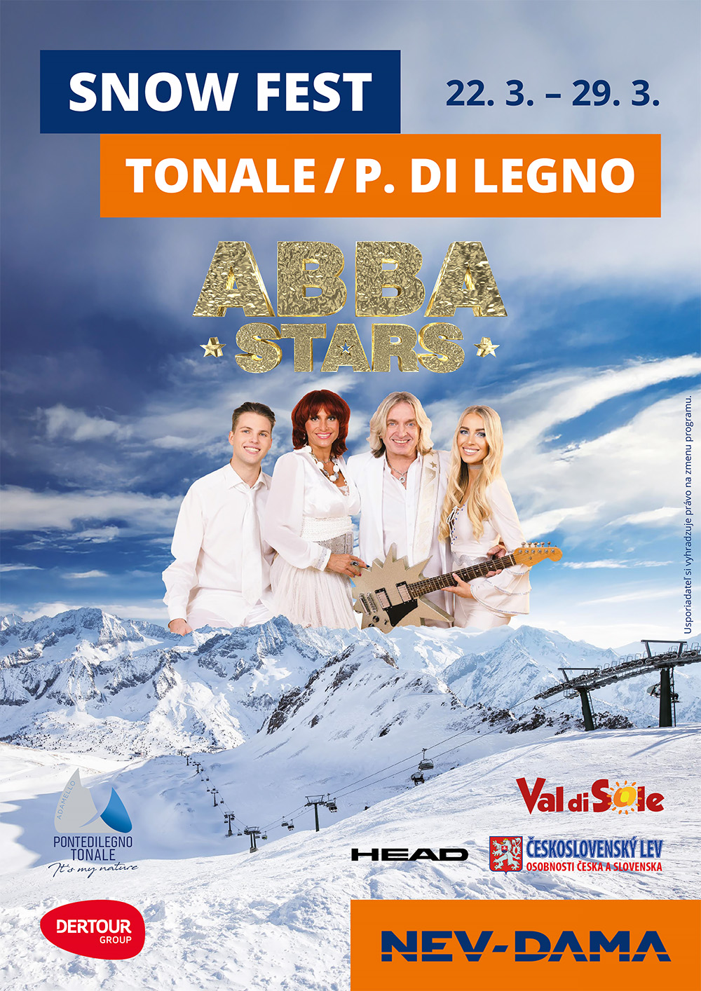 Čo takto užiť si jarné lyžovanie a Ski Fest v talianskom Tonale? Môžete sa tešiť na zasnežené svahy, koncert úspešnej revivalovej kapely ABBA STARS, bohatú tombolu s atraktívnymi cenami a množstvo ďalších nezabudnuteľných zážitkov!