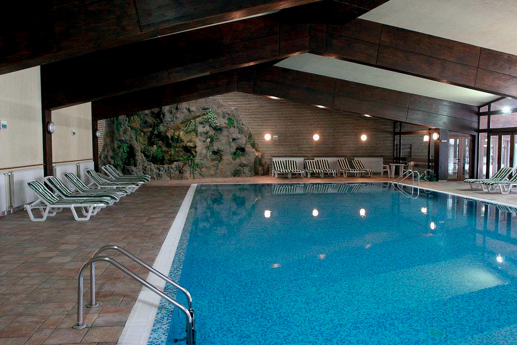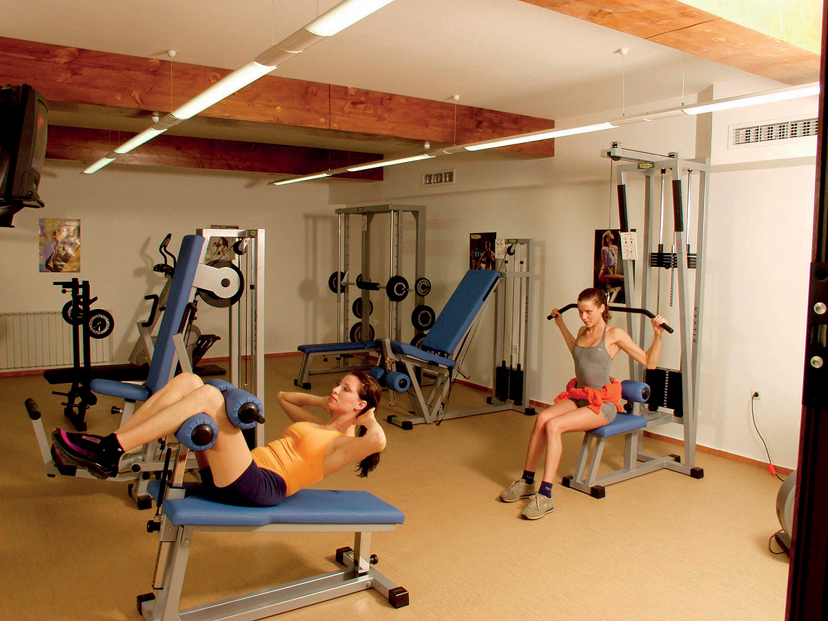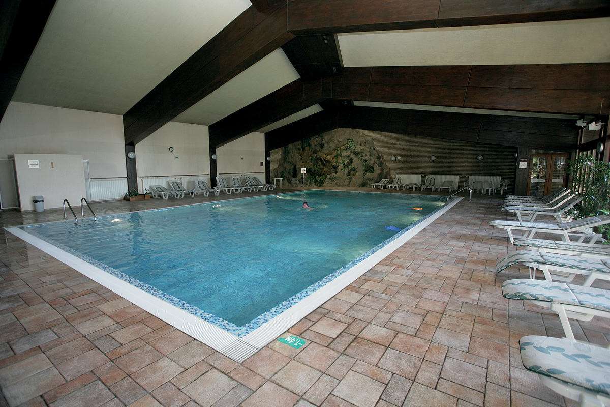 bazén s lehátkami, fínska sauna, para, solárium*, masáže*, posilňovňa, biliard*, stolný tenis*