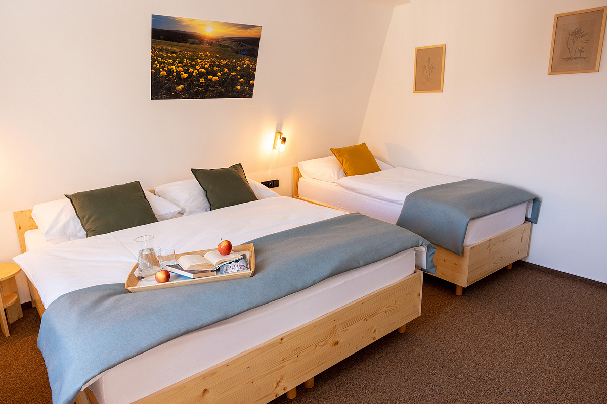 izba s manželskou posteľou či s oddeliteľnými lôžkami a 1 samostatným lôžkom, sociálne zariadenie
