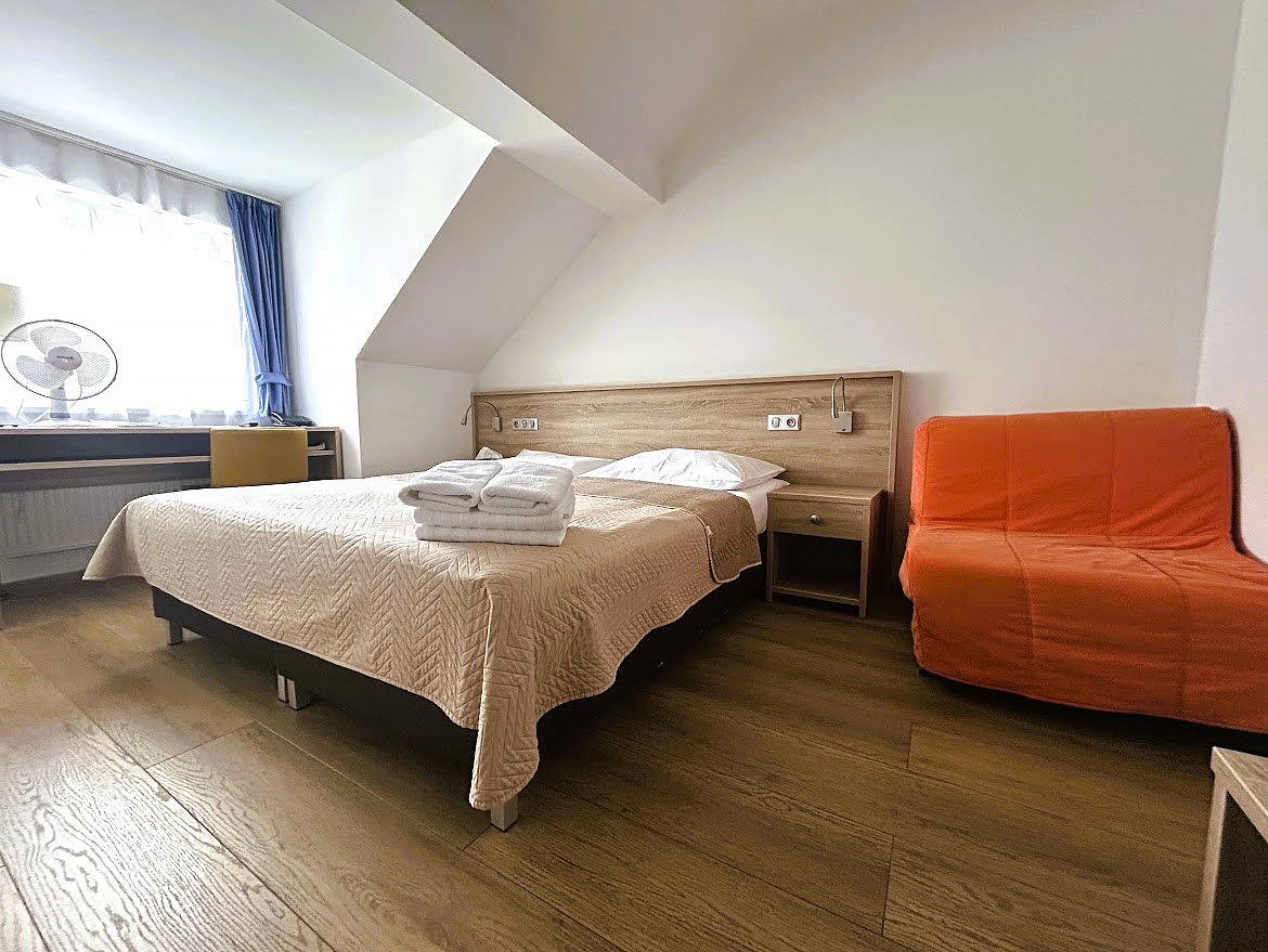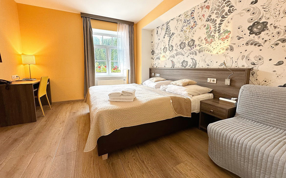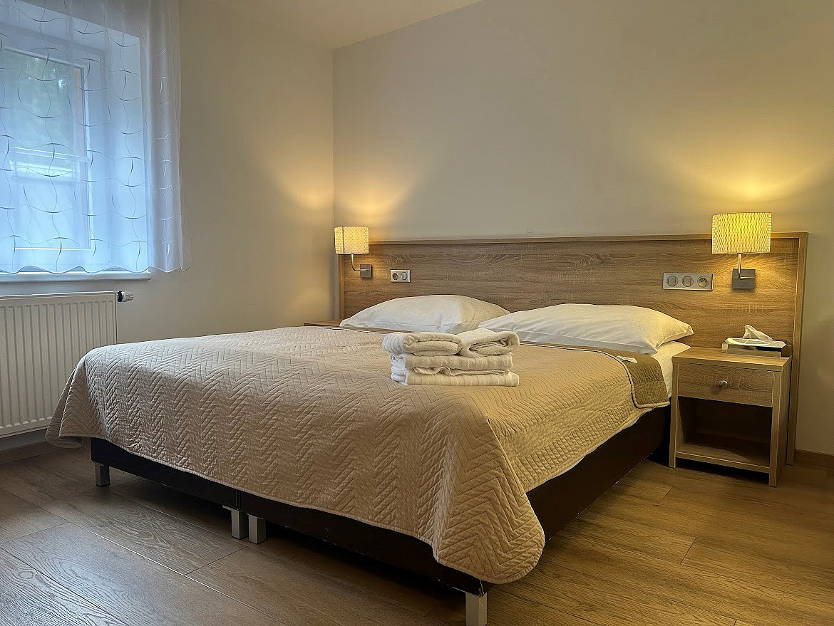 Standard 2+2 - izba s manželskou posteľou či s oddeliteľnými lôžkami s možnosťou prístelok pre 1 až 2 osoby do nedovŕšených 15 rokov, zvyčajne rozkladací gauč, sociálne zariadenie