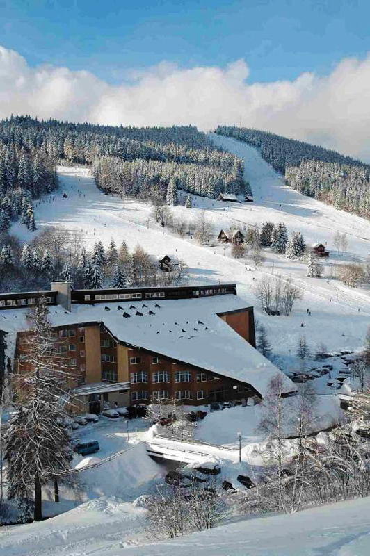 poloha hotela v pokojnejšej časti Harrachova (Rýžoviště) na úpätí Čertovej hory