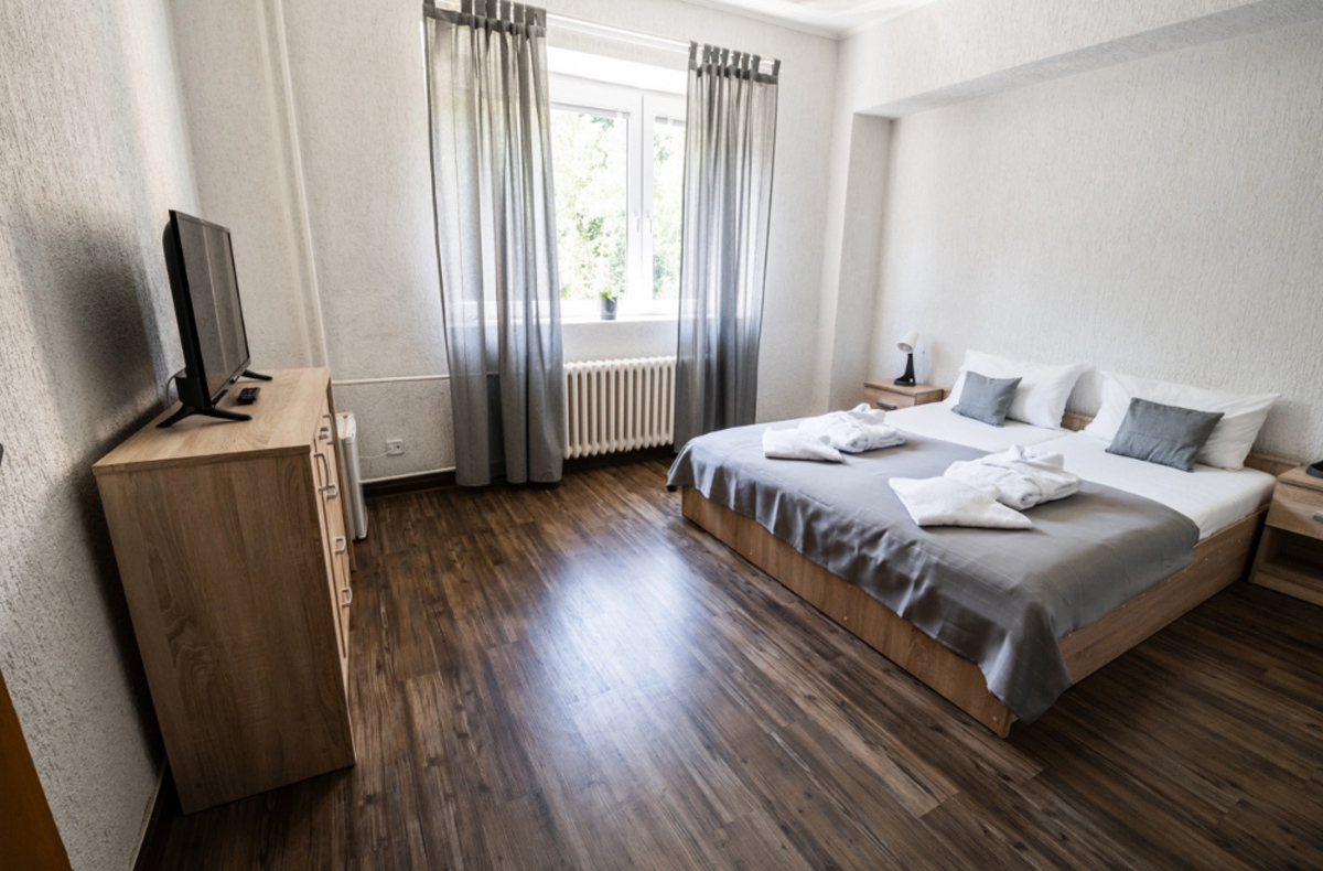 izba s 2 manželskými posteľami alebo 4 samostatnými lôžkami, sociálne zariadenie