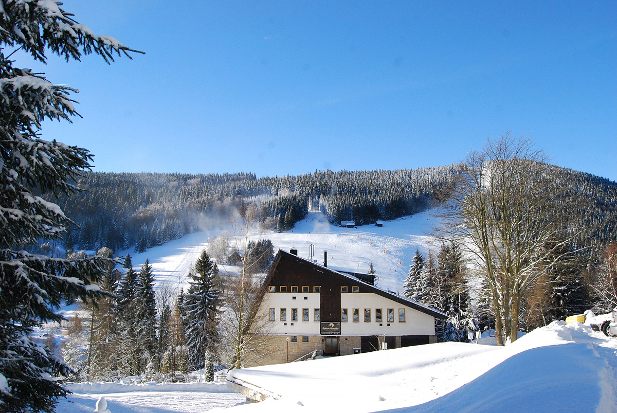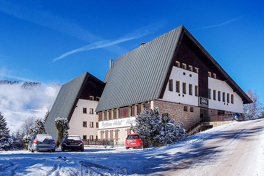 poloha hotela v kľudnej časti Harrachova s výhľadom na Čertovu horu