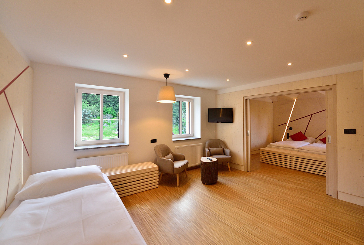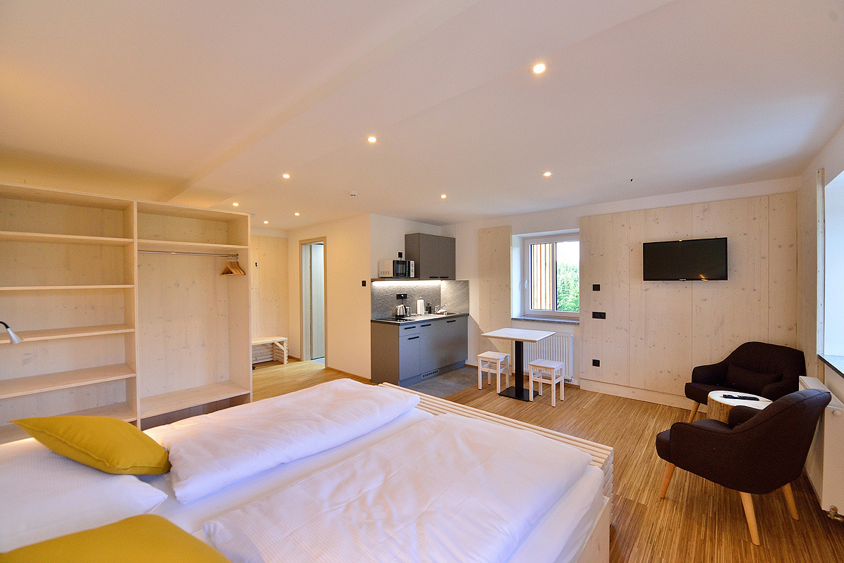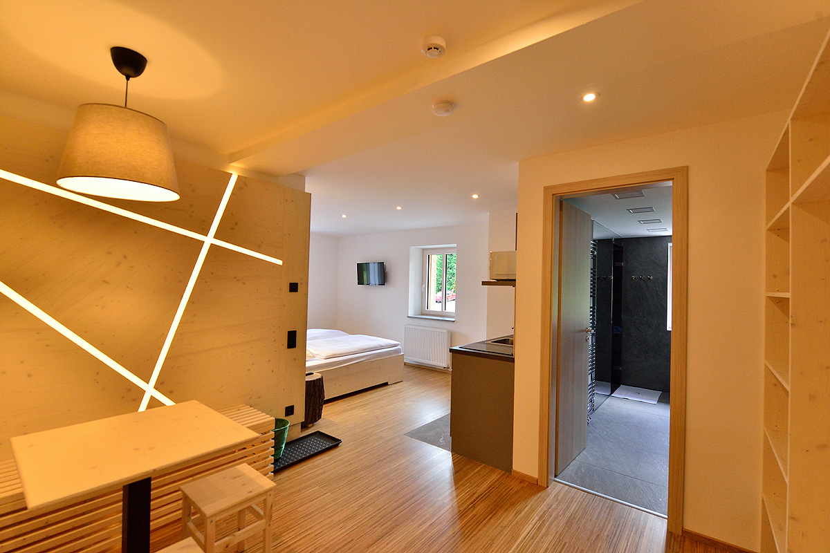 35 m² - izba s kuchynským kútom, manželskou posteľou a možnosťou 2 prístelok, sociálne zariadenie; izbu je možné prepojiť dverami