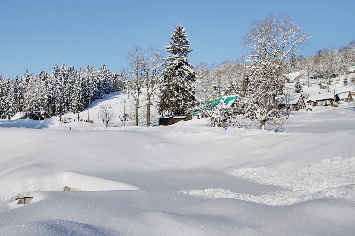 iba 100 m od menšieho lyžiarskeho areálu Lucifer pre začiatočníkov aj pokročilých