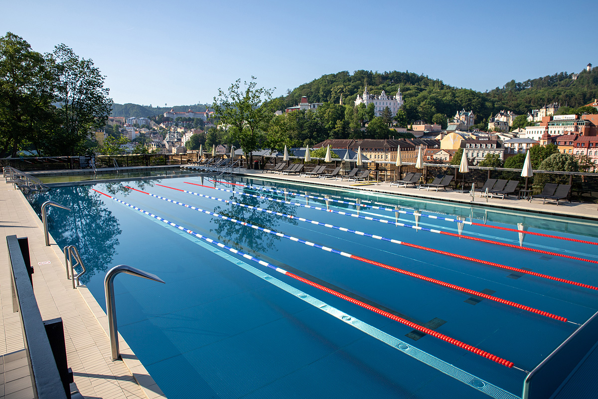 izba s manželskou posteľou či s oddeliteľnými lôžkami a možnosťou 1 prístelky, sociálne zariadenie so sprchou či vaňou, výhľad na kúpeľné centrum mesta