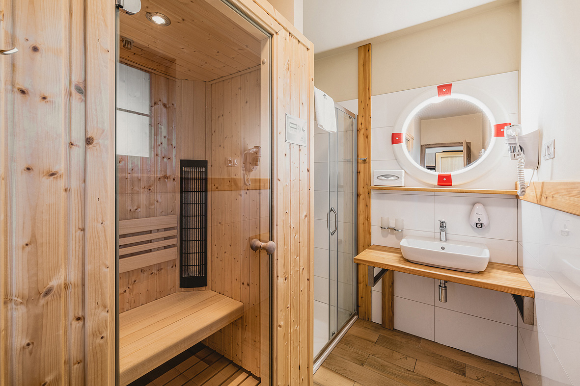 18 m² - izba s manželskou posteľou alebo 2 samostatnými lôžkami a prípadne rozkladacím gaučom pre 1 osobu, sociálne zariadenie spravidla so sprchou, niektoré izby s balkónom*