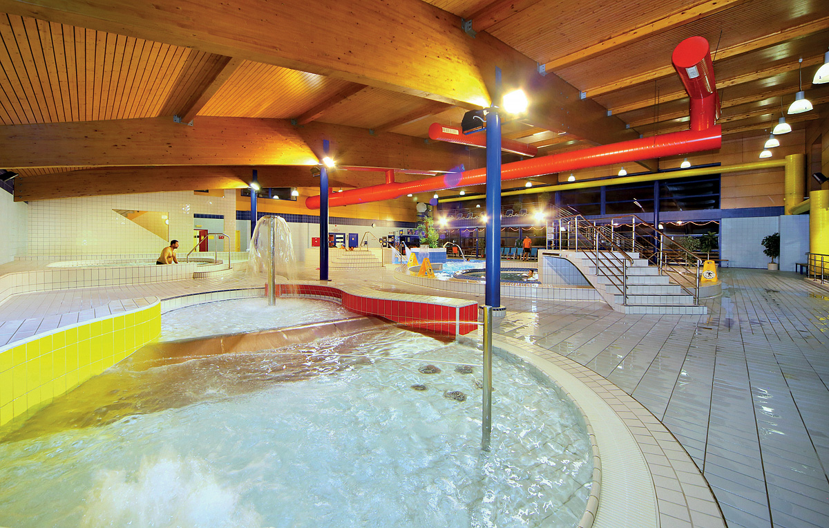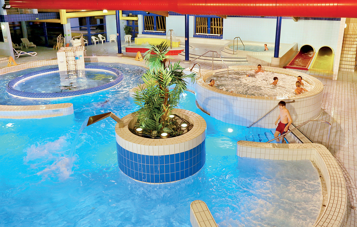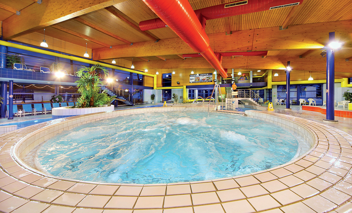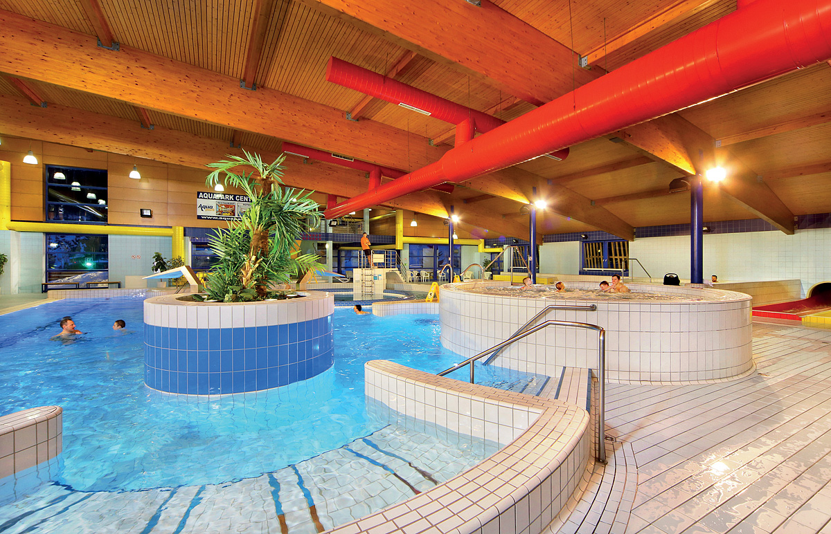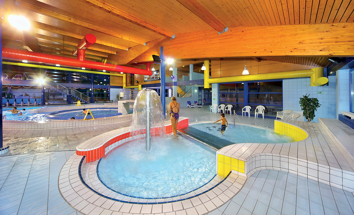 šport a relaxácia - aquapark: rekreačný bazén s chrličom vody, detský bazén, divoká rieka s protiprúdom, 3x tobogán, bar, ležadlá, soľná jaskyňa; wellness centrum: vonkajšia vírivka*, fínska sauna*, aromatická sauna*, para*, ľadový kúpeľ*, Kneippov chodník*; masáže*; vstup do wellness centra je pre deti do 18 let dovolený len v sprievode dospelej osoby