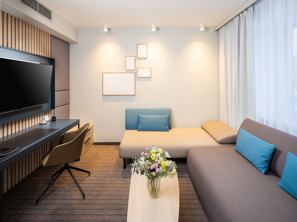 TV sat., wi-fi pripojenie, minibar, spa taška (župan, prezúvky, osuška), fén, telefón, klimatizácia (izba Standard Plus), trezor, čajová súprava (izba Standard view)
