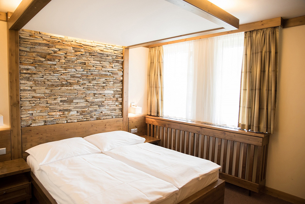 priestranná izba s manželskou posteľou či s oddeliteľnými lôžkami s možnosťou prístelok pre 1 až 2 deti do nedovŕšených 12 rokov, spravidla rozkladací gauč, sociálne zariadenie