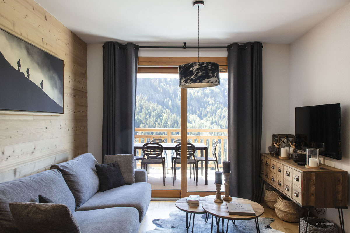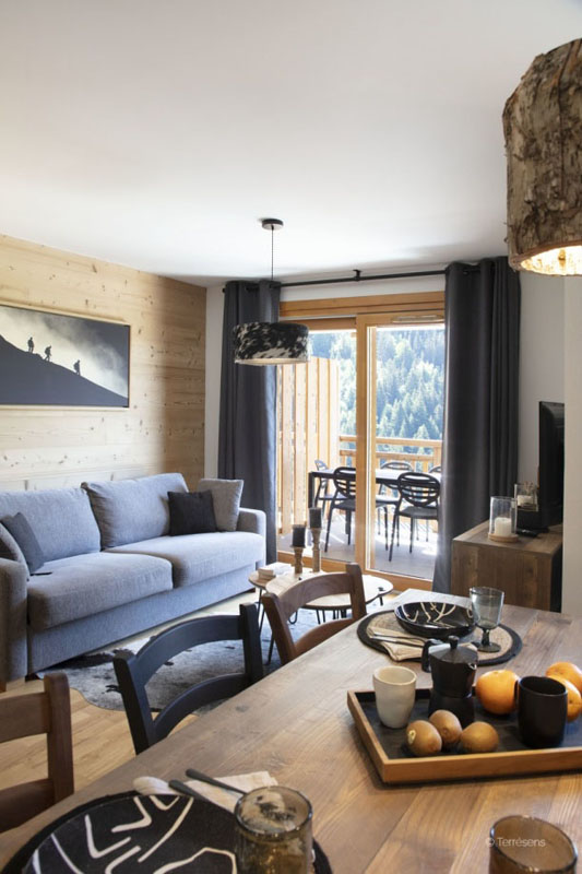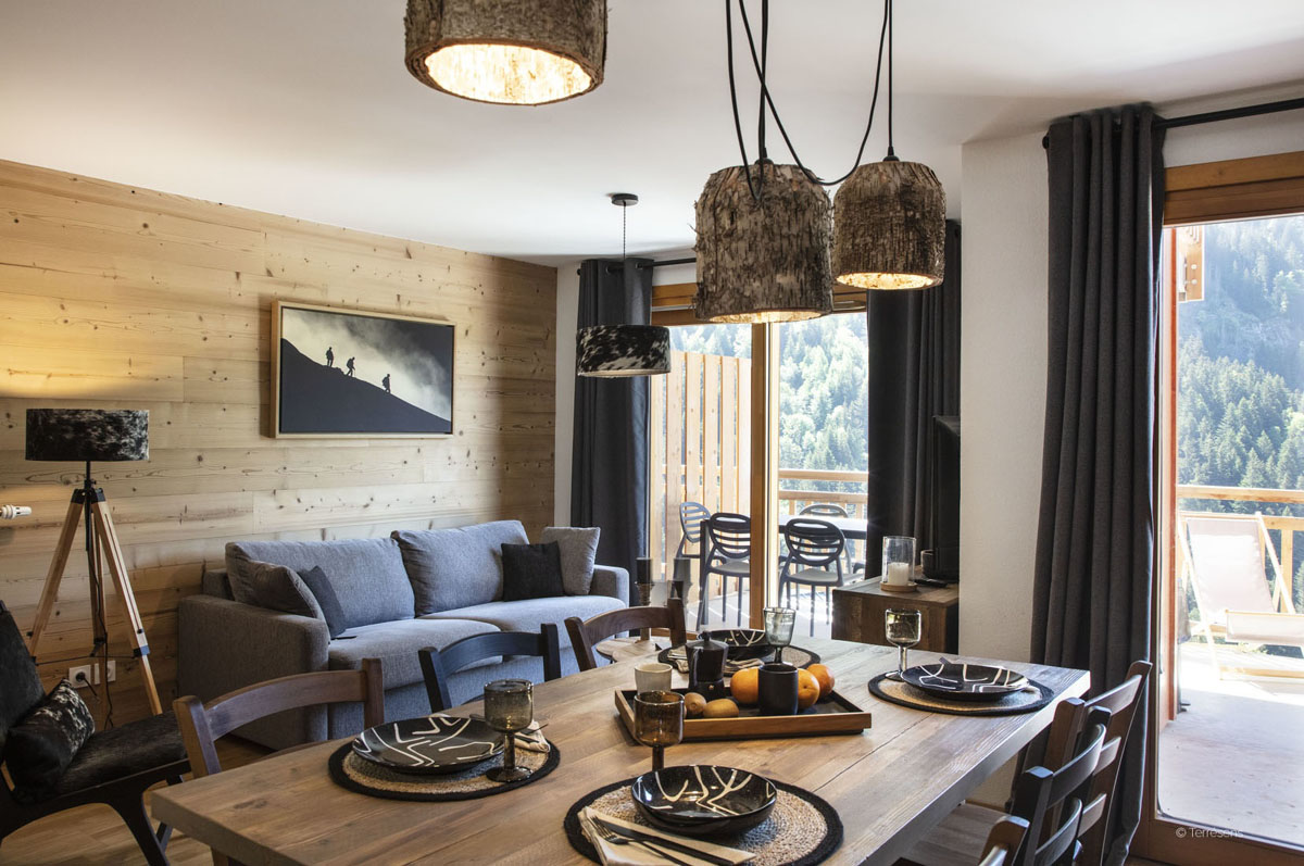 59 m² - 1 spálňa s manželskou posteľou, kabína s poschodovou posteľou, obývacia izba s kuchynským kútom a rozkladacím gaučom pre 2 osoby (možný i typ "zásuvka"), sociálne zariadenie so sprchou či vaňou, veľká terasa s výhľadom na hory