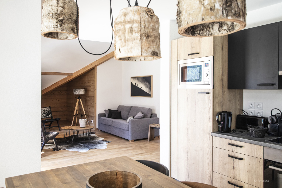 60 m² - 1 spálňa s manželskou posteľou, 1 spálňa s 2 samostatnými lôžkami, obývacia izba s kuchynským kútom a rozkladacím gaučom pre 2 osoby (možný i typ "zásuvka"), sociálne zariadenie so sprchou či vaňou, 2x WC, balkón či terasa s výhľadom na hory