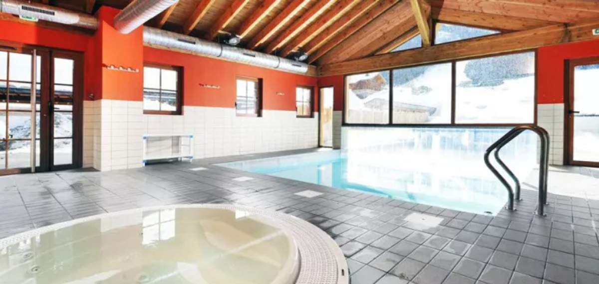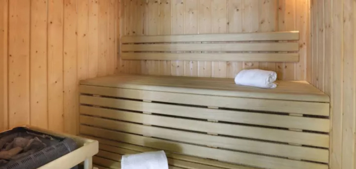 vyhrievaný bazén (polovica vnútorný, polovica vonkajší), vírivka, fínska sauna