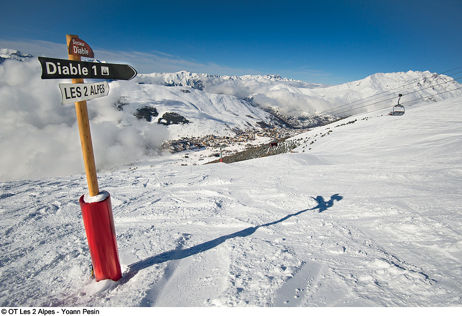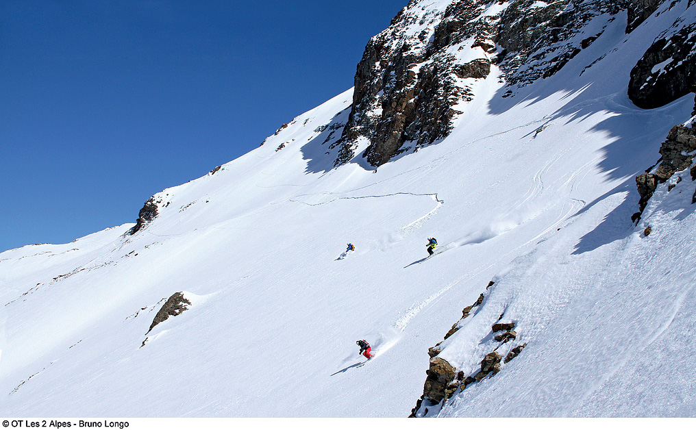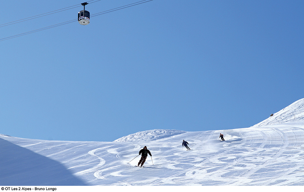 Nájdete tu i najdlhšiu čiernu zjazdovku Európy, 16 km dlhú La Sarenne s hrbolmi a úctyhodným prevýšením 1.600 m, vychýrenú zjazdovku Le Tunnel prechádzajúcu 200 m osvetleným tunelom cez skalu, úchvatné červené zjazdovky do Oz en Oisans či prekrásnu čiernu La Fare pri zjazde do Vaujany. No zďaleka nečakajte len extrémy: je tu i veľké množstvo miernych svahov a rozľahlých zón pre začiatočníkov, ide teda o stredisko vhodné nielen pre náročných lyžiarov, ale aj pre rodiny s deťmi.
