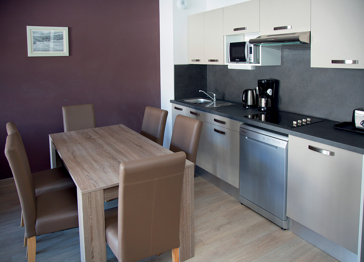 32 m² - 1 spálňa s manželskou posteľou alebo 2 samostatnými lôžkami, obývacia izba s kuchynským kútom a rozkladacím gaučom pre 2 osoby (možný aj typ "zásuvka") alebo 2 samostatnými lôžkami, sociálne zariadenie so sprchou alebo vaňou, balkón alebo terasa