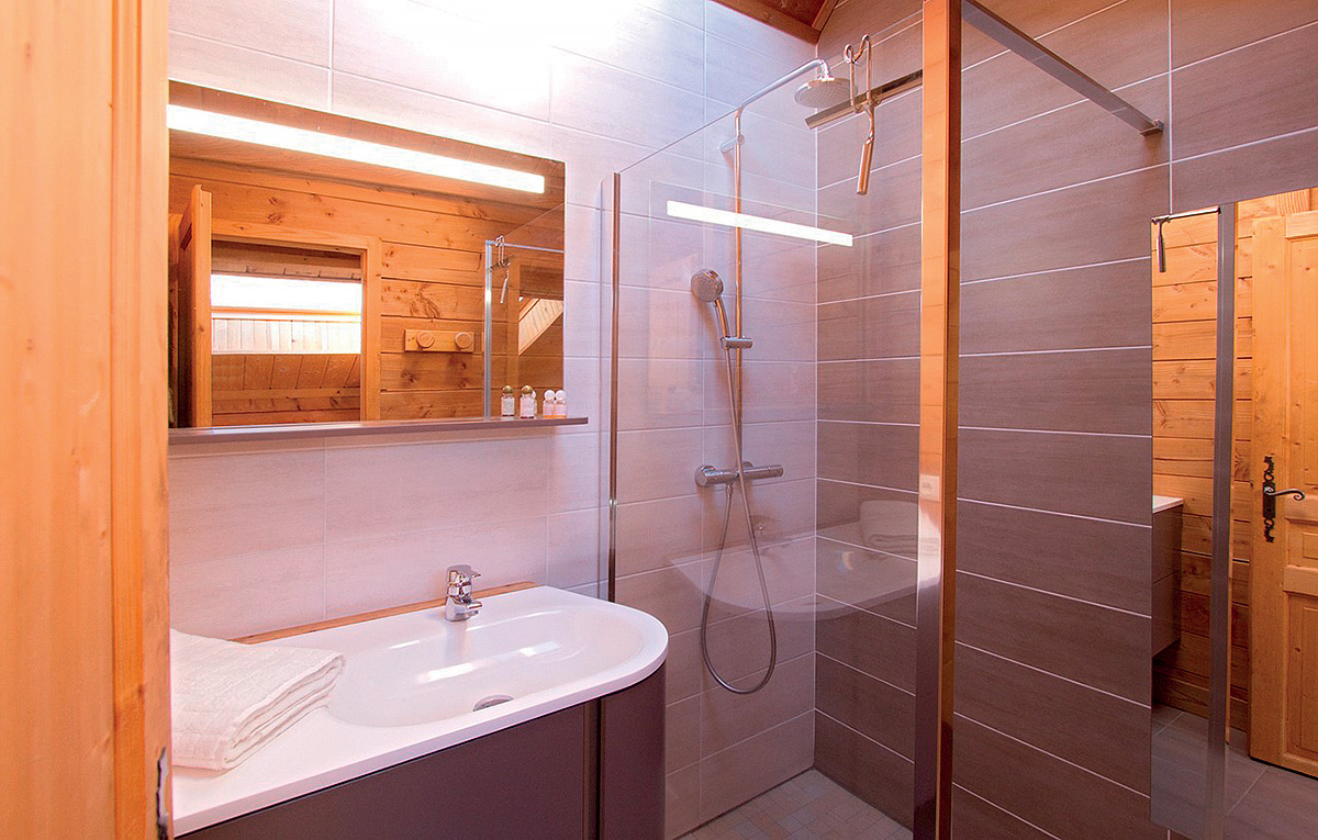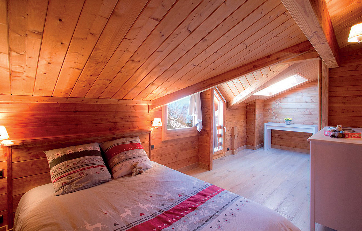 chalet 12 - 200 m² - 1. poschodie chaletu: 1 spálňa s 2 samostatnými lôžkami, 1 spálňa s 2 poschodovými posteľami, 2x sociálne zariadenie;