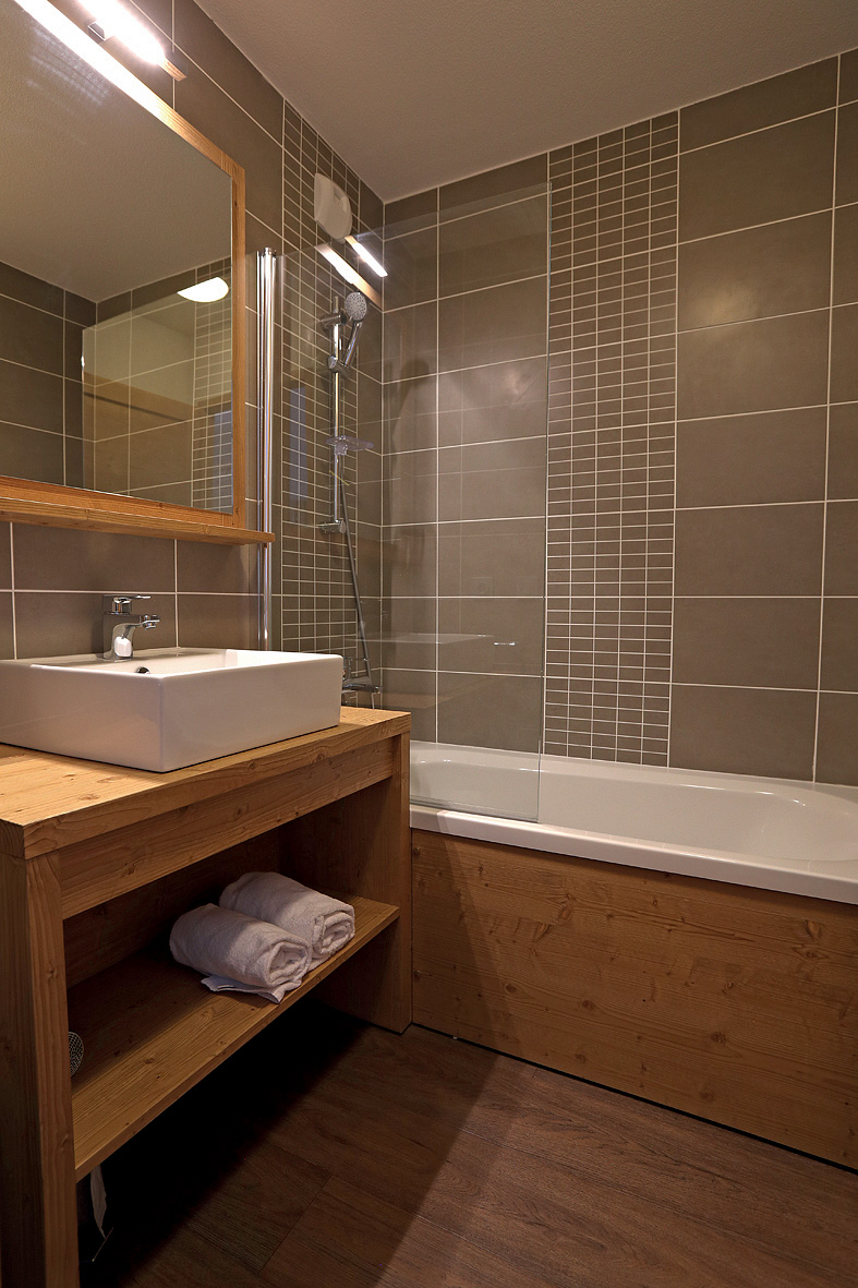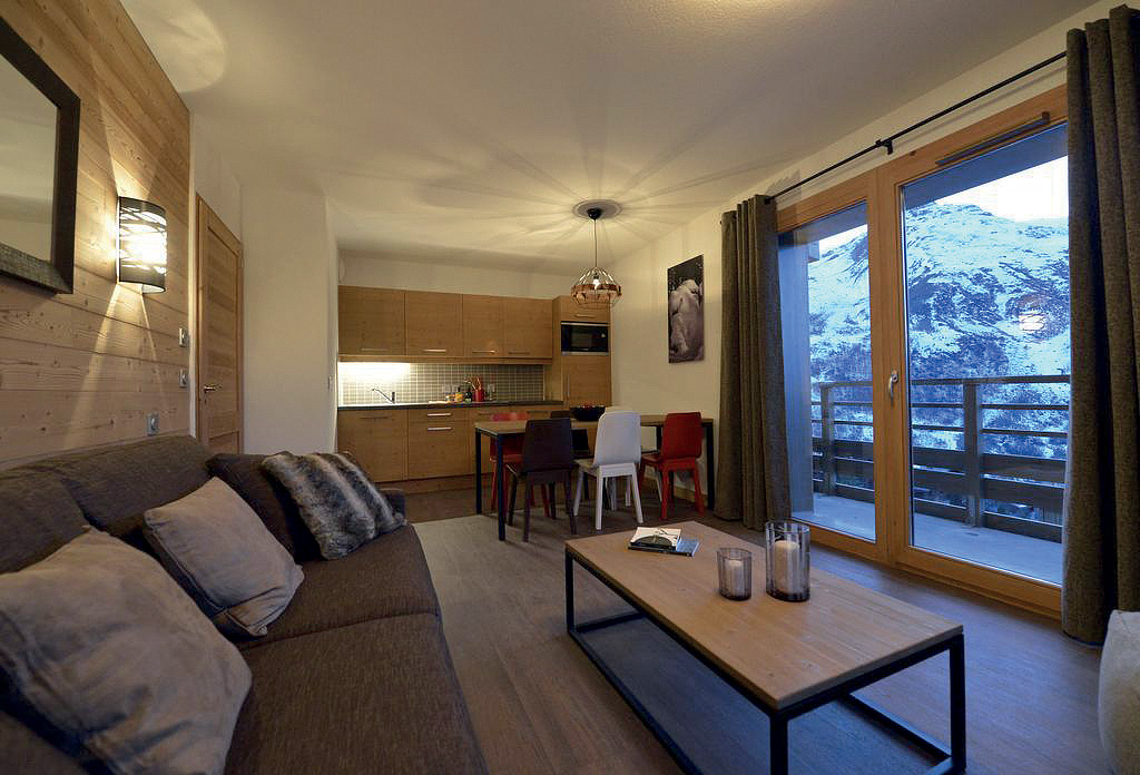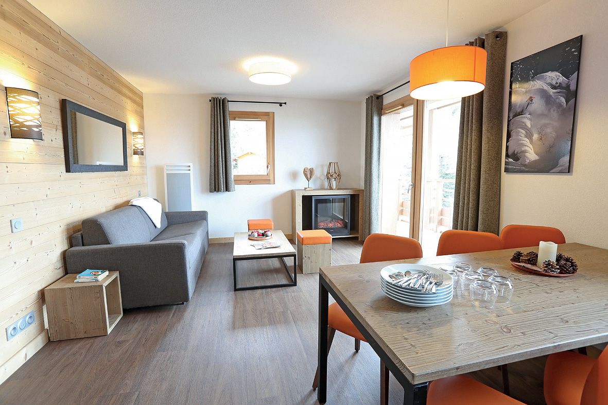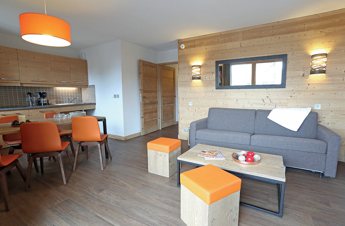58 m² - 2 spálne s manželskou posteľou s oddeliteľnými lôžkami, 1 spálňa s poschodovou posteľou, obývacia izba s kuchynským kútom a rozkladacím gaučom pre 2 osoby (možný aj typ "zásuvka"), 2x sociálne zariadenie (1x so sprchou, 1x s vaňou, 1 z nich bez WC), s výhľadom na hory