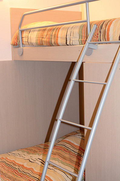 bilo 6 - 35 m² - 1 spálňa s manželskou posteľou alebo 2 samostatnými lôžkami, obývacia izba s kuchynským kútom a rozkladacím gaučom pre 2 osoby (možný aj typ "zásuvka"), kabína alebo vstupná miestnosť s poschodovou posteľou, sociálne zariadenie s vaňou, spravidla balkón alebo terasa